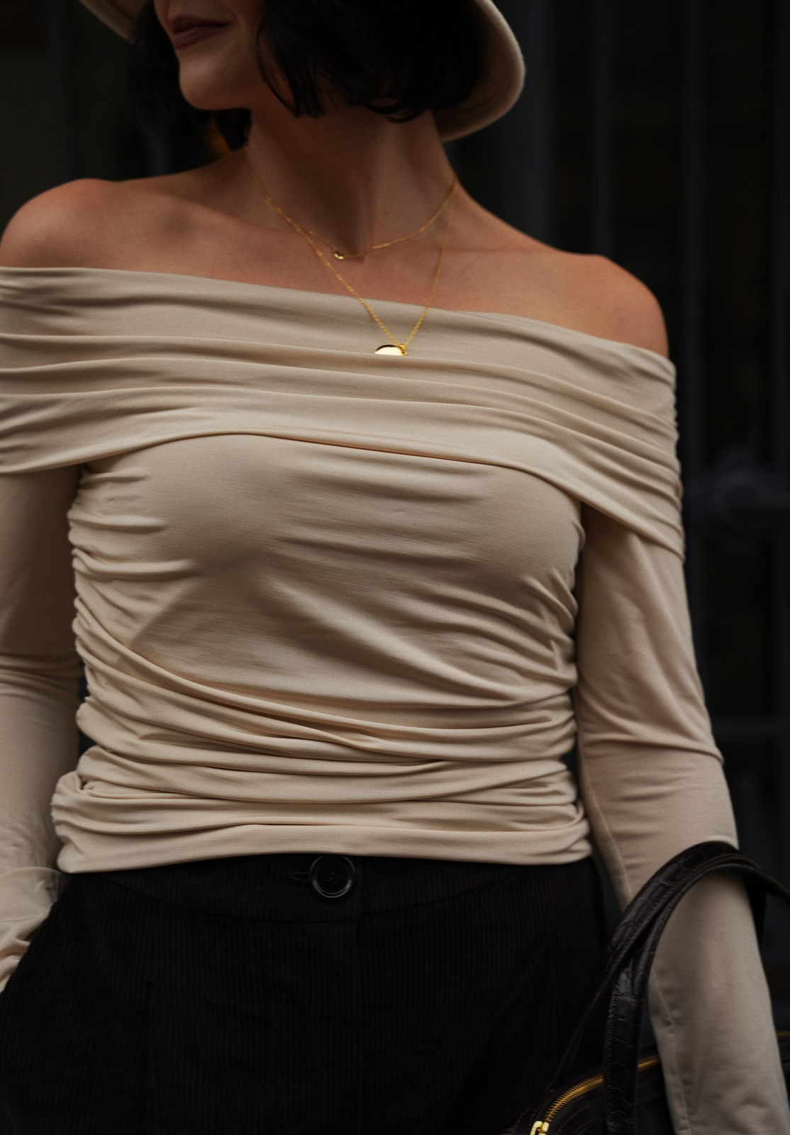 Urzekająca wyrazistym kolorem i zjawiskowym dekoltem bluzka Zoé powstała z miłości do klasyki z nutką romantyzmu. Uszyta z podwójnej warstwy dzianiny, aby zapewnić maksymalny komfort noszenia. Dekolt możesz opuścić na ramiona lub pobawić się formą i dopasować tak, jak lubisz. Marszczenia po bokach modelują sylwetkę. Dostępna w kolorze czekoladowym, bordowym i couleur champagne ♡