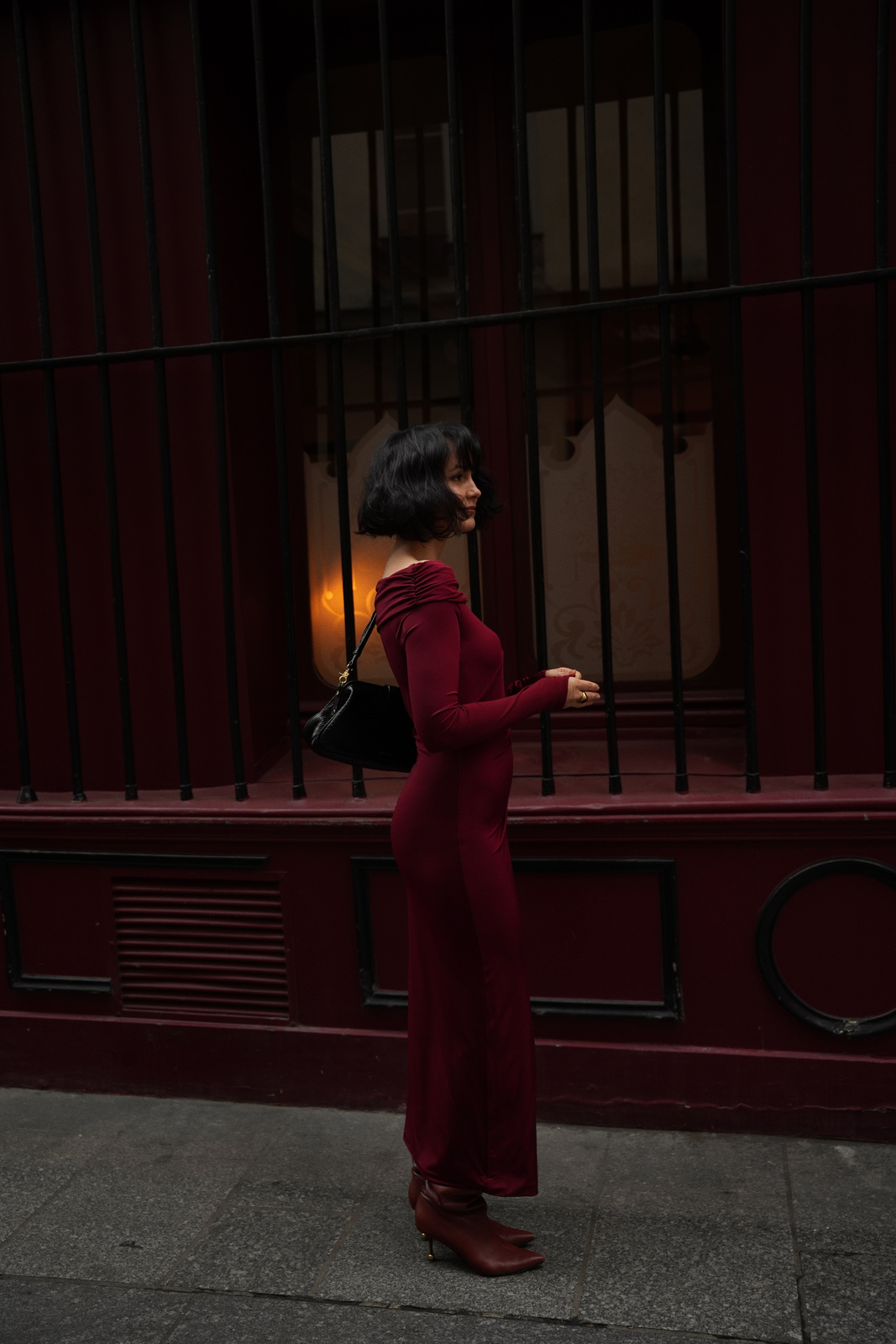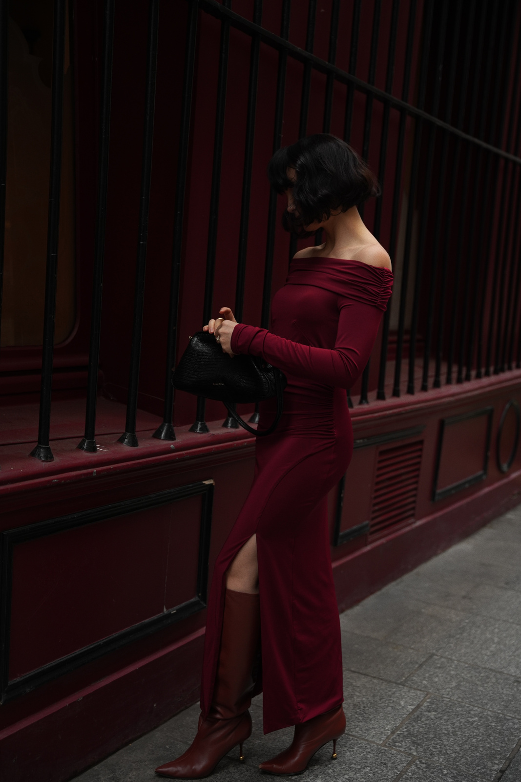 Na co dzień i na wieczorne wyjścia – niesamowicie wygodna wiskozowa sukienka Déborah dostępna tej jesieni w kolorze czarnym i bordowym. Dopasowana do sylwetki lecz niekrępująca ruchów. Uszyta z podwójnej warstwy tkaniny, dla Twojego komfortu, z dekoltem, który możesz opuścić na ramiona oraz wygodnym marszczeniem w talii, co subtelnie podkreśli sylwetkę. Rozcięcie z boku efektownie odsłania nogę i równocześnie potęguje komfort noszenia. J'aime la vie!