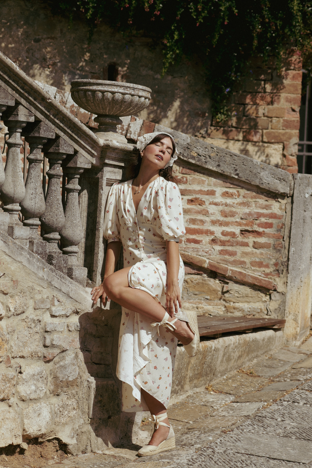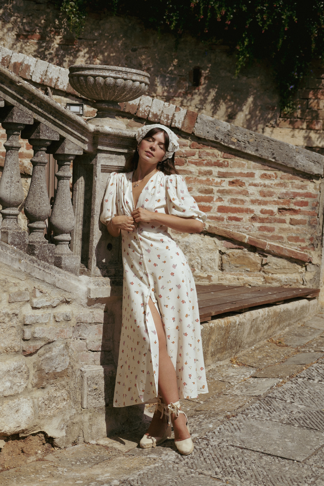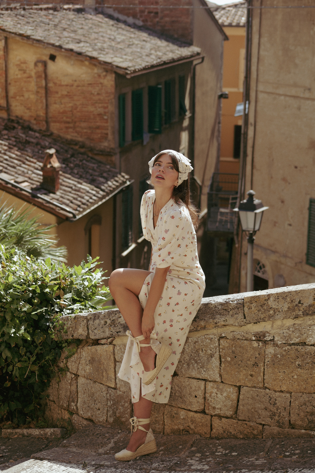Sukienka La Serenità to kwintesencja letniej lekkości. Uszyta z miękkiej, oddychającej wiskozy, otula ciało subtelnie. Dodatkowa podszewka sprawia, że wszystko pozostaje na swoim miejscu, a Ty możesz czuć się swobodnie – i kobieco. Jej krój podkreśla naturalne piękno sylwetki – dopasowana góra z marszczeniem przy dekolcie zmysłowo uwydatnia linię biustu, a zaznaczona talia płynnie przechodzi w lekko rozkloszowany dół, który porusza się w rytm kroków, niczym w tańcu.